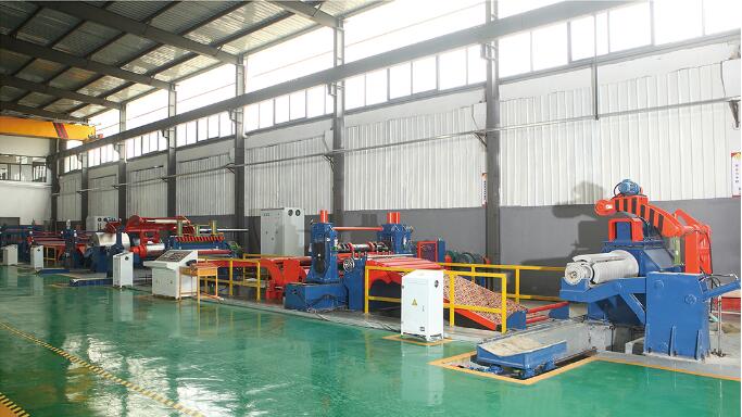 本設備的送料、剪切、收料等三個工作主機在工作時是自動協調的,不會對板料產生拉伸動作,杜絕卷料在本設備上的拉伸變形,同時縱剪時板料處于自由剪切狀態,不會產生剪切跑偏現象;本設備之張力產生站可以產生各帶間均衡的、整體可調節的張力,以保證適應不同板料收料時必需之張力,同時也有效保證了各帶卷之相對松緊度;本設備具有定長切斷功能,當設備縱剪到預先設定長度或到尾料時,設備將自動均勻降速,無料自動停機,直至速度為零,然后自動或人工操作按扭進行分卷剪切。